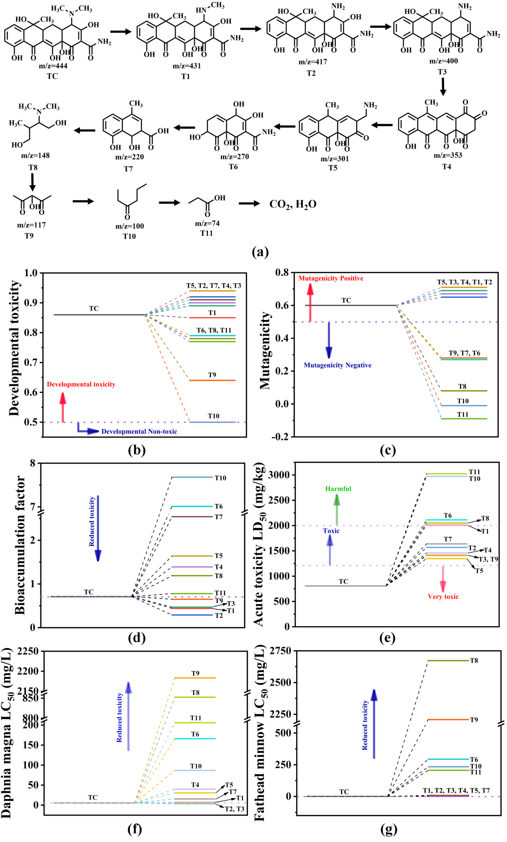 圖4. 降解路徑及毒性評估