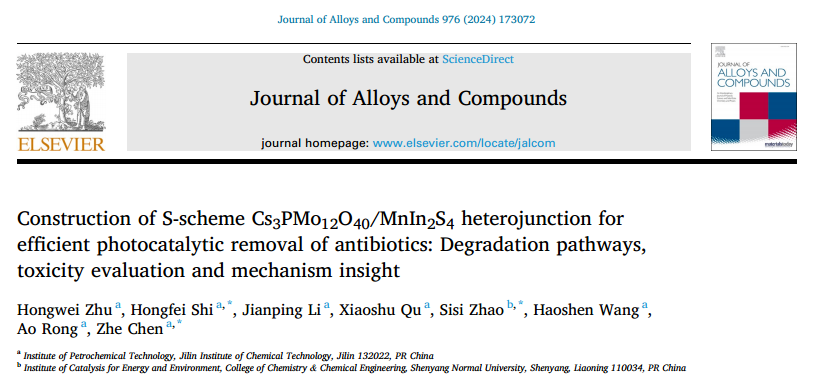 標題:Construction of S-scheme Cs3PMo12O40/MnIn2S4 heterojunction for efficient photocatalytic removal of antibiotics: Degradation pathways, toxicity evaluation and mechanism insight