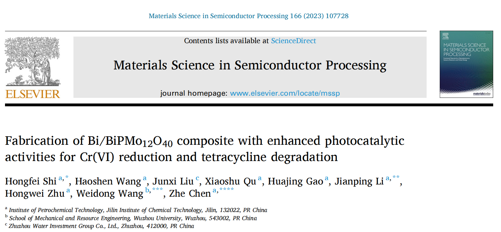 4. 作者信息:第一作者是 石洪飛副教授(吉林化工學院)。通訊作者為 石洪飛副教授、李建平講師、陳哲教授(吉林化工學院)、王衛東教授(梧州學院)。