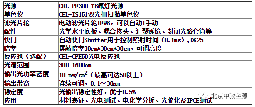 5. 光源型號:北京中教金源CEL-SLF 300(光電化學(xué)測試分析系統(tǒng))?